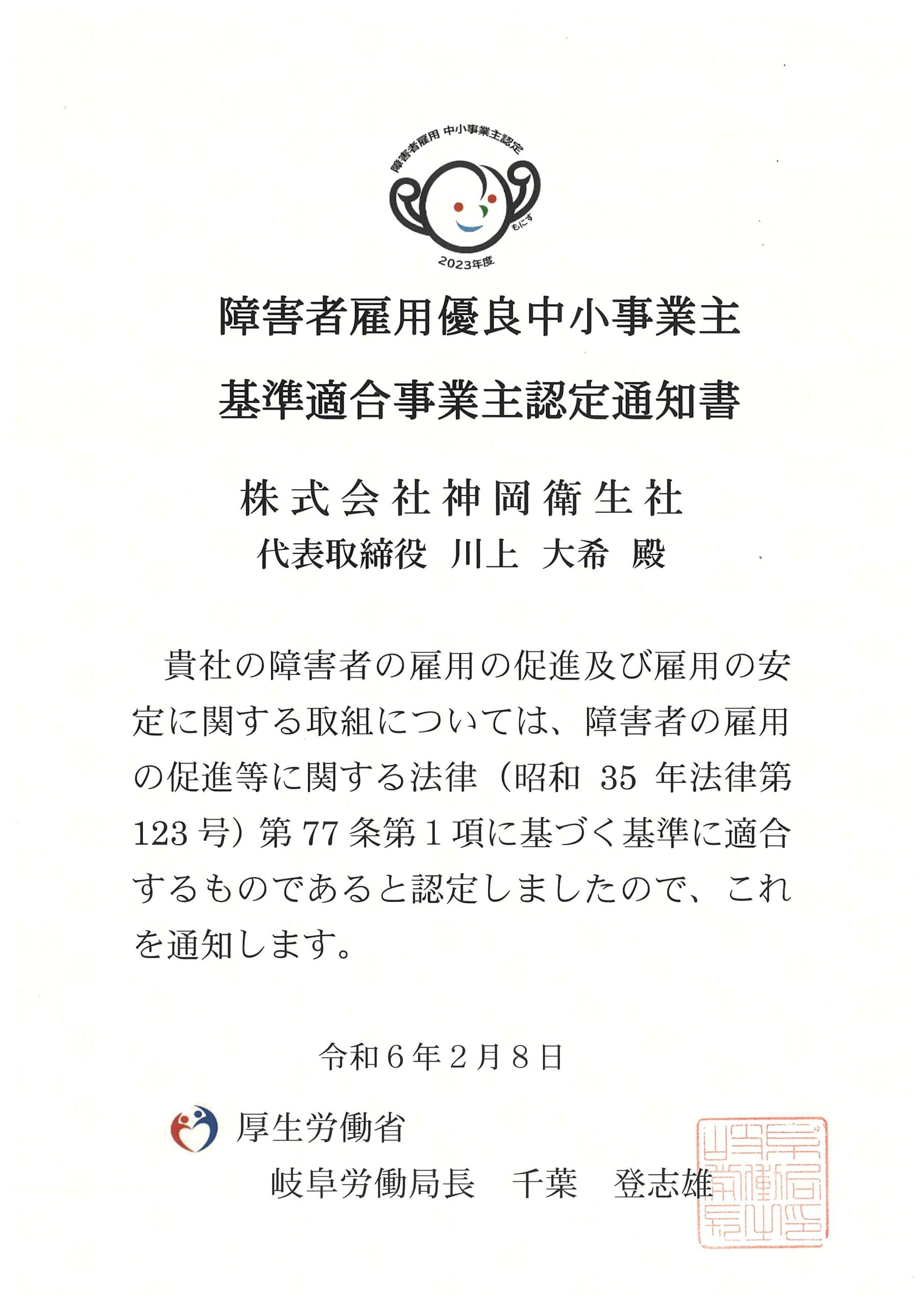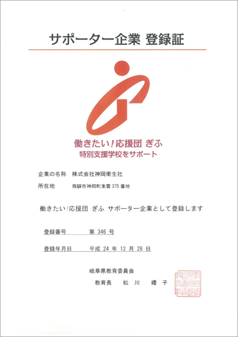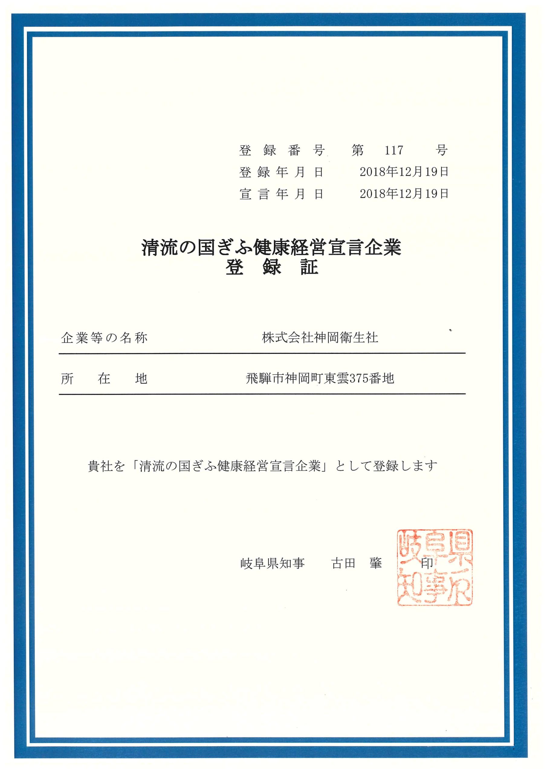 岐阜県が推進している「清流の国ぎふ健康経営宣言企業」に登録して、